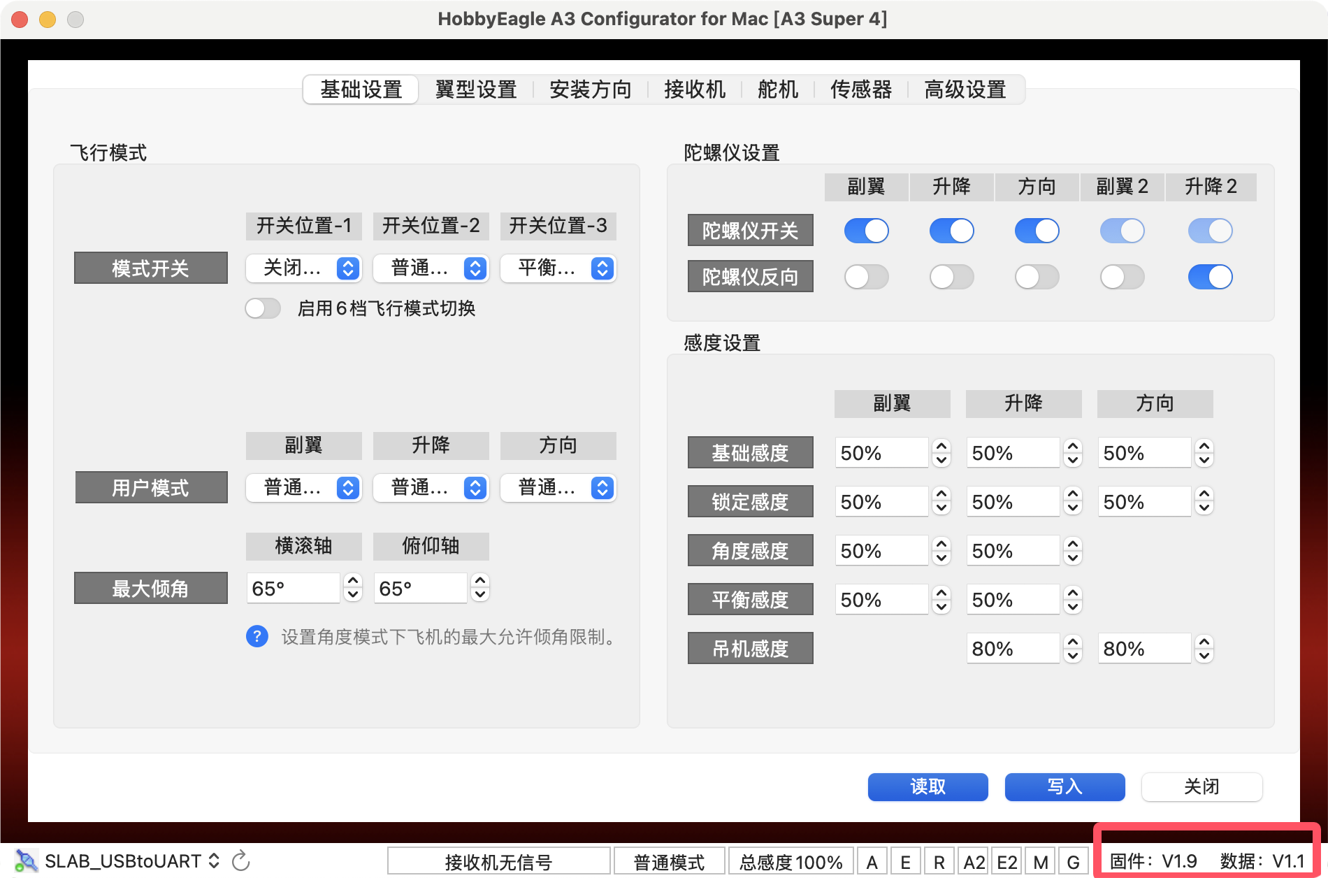 点击“读取”按钮可以重新读取陀螺仪中的设置数据,重新读取将覆盖调参界面中未保存的数据: