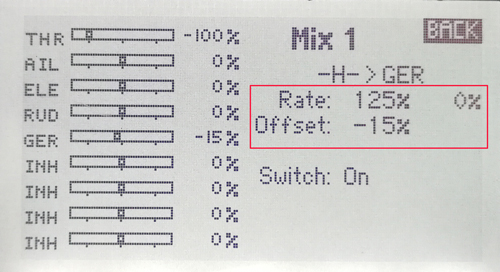 In order to achieve a 6-position switch, programmable mixing functions should be supported by your radio system. A common approach is to apply mixings on a 2-position switch (e.g. SwA) and a 3-position switch (e.g. SwB) and get 6 different position outputs on a certain channel (e.g. Gear or Flap). To make A3S3 read 6 states from the signal correctly, the pulse length of the output signal must meet the requirement of range in the following figure. In our examples, the ±85%, ±50%, ±15% of the servo travel are chosen as the set points. The result will be when SwA is in the [0] position, the output will change between -85%, -50% and -15% when you switch between the three positions of SwB, and when SwA is in the [1] position , the output will change between +15%, +50% and +85% when you switch between the three positions of SwB, as shown below.